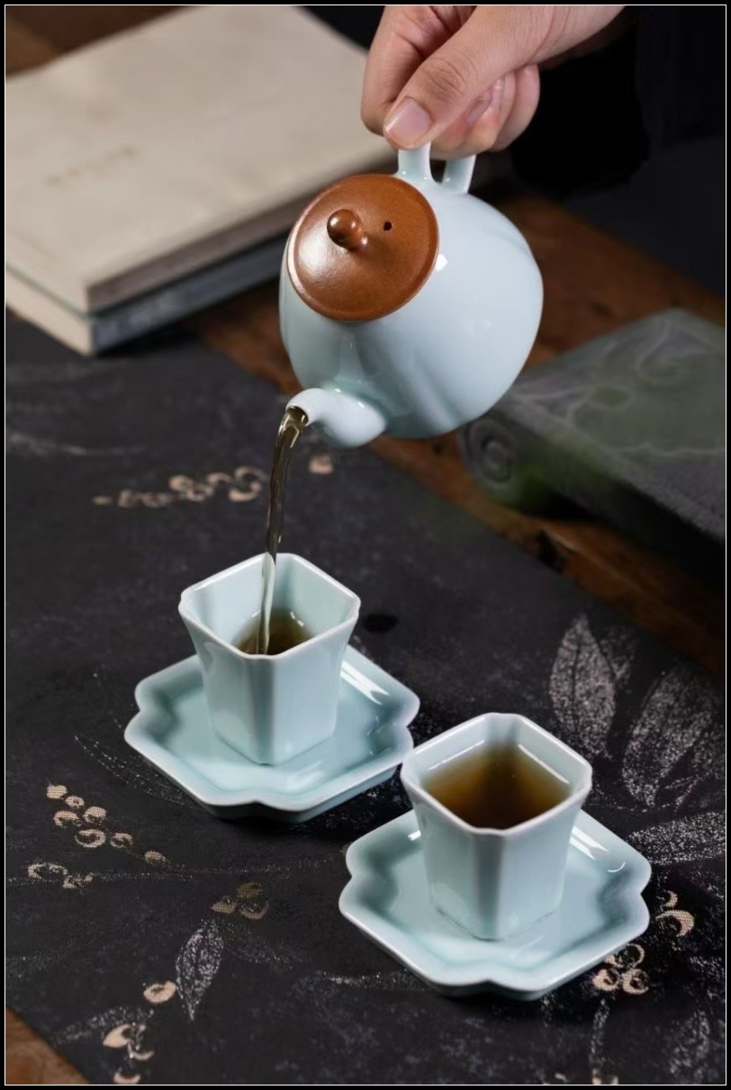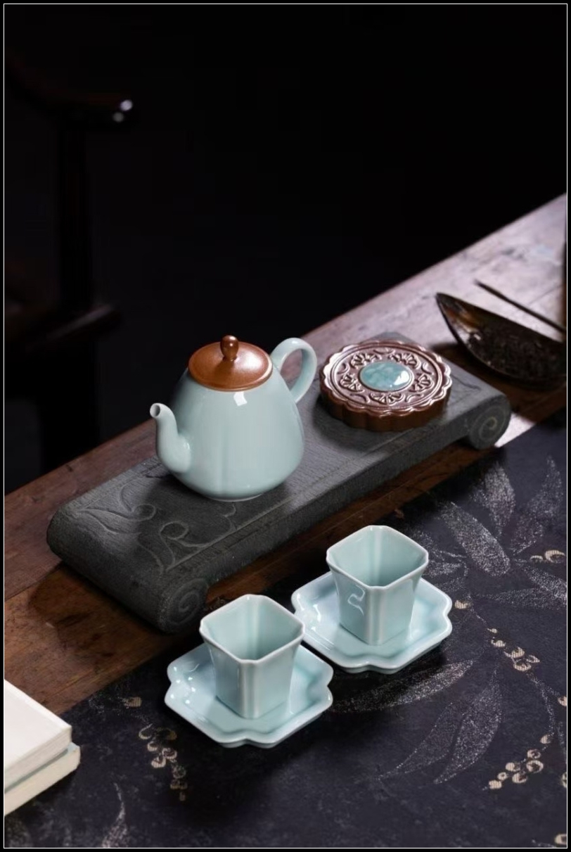 配置:一茶壶、一盖置、二茶杯、二杯托
